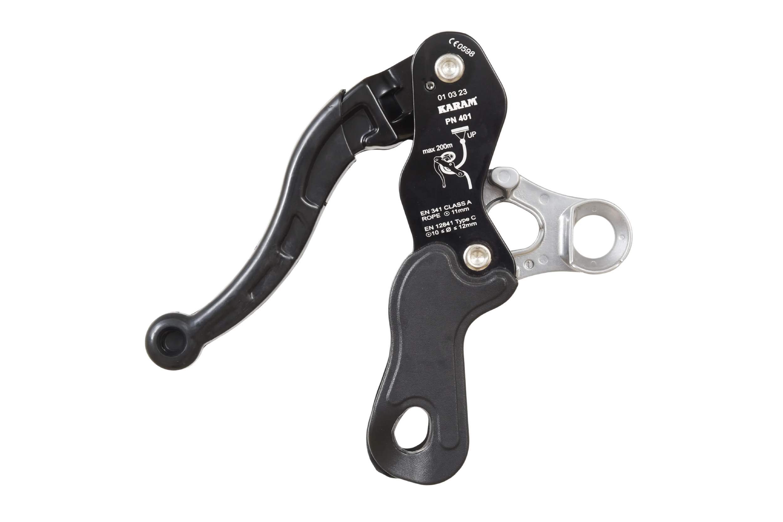 A fall arrest and controlled descent device designed to provide safe and smooth lowering for workers. It features an ergonomic grip mechanism that allows for easy control of speed during descent, making it ideal for rescue operations or working at height in controlled environments.