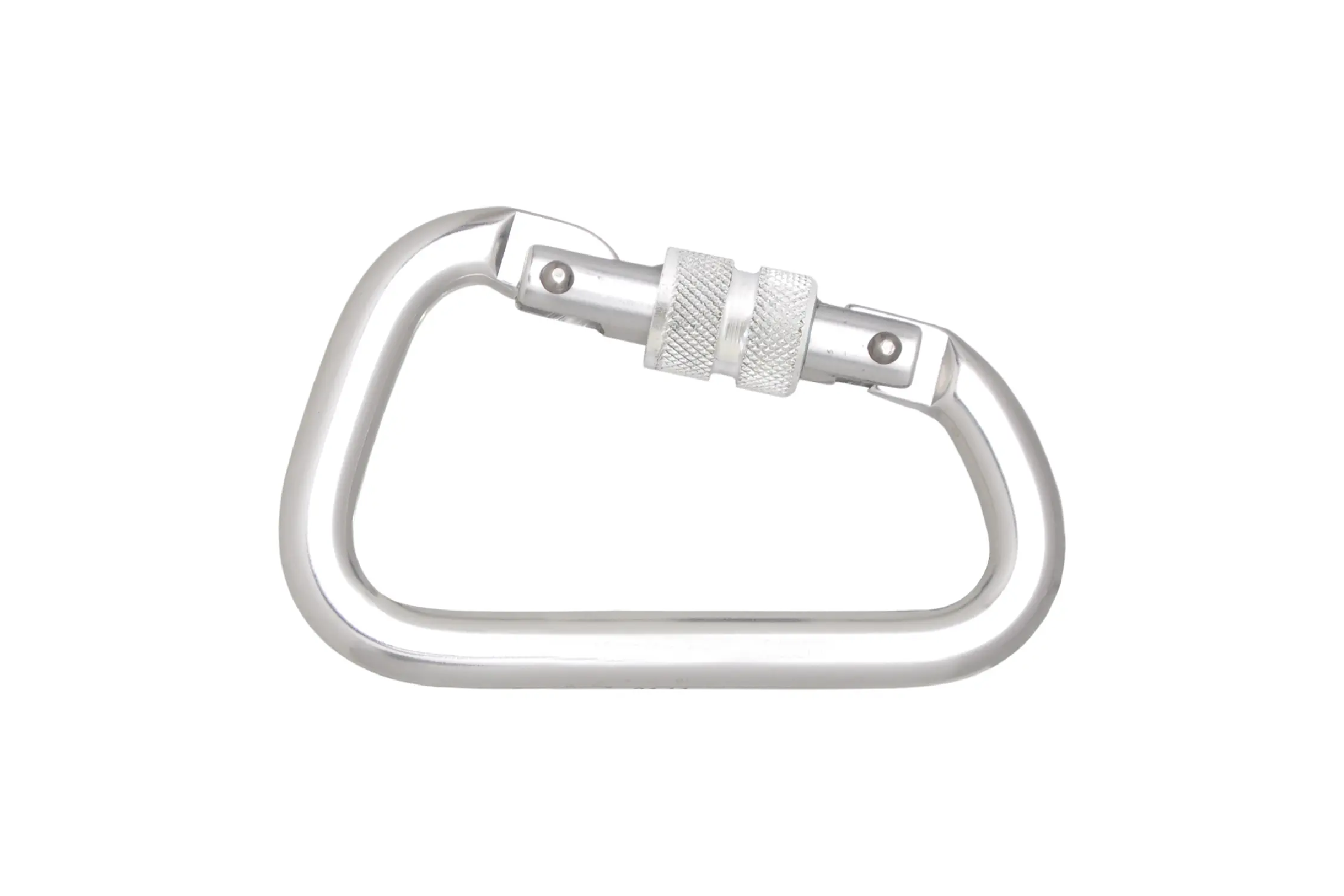 A durable stainless steel karabiner featuring a quarter-turn locking mechanism and a captive pin to prevent the gate from accidentally opening, ensuring secure and reliable attachment in fall protection and climbing applications.