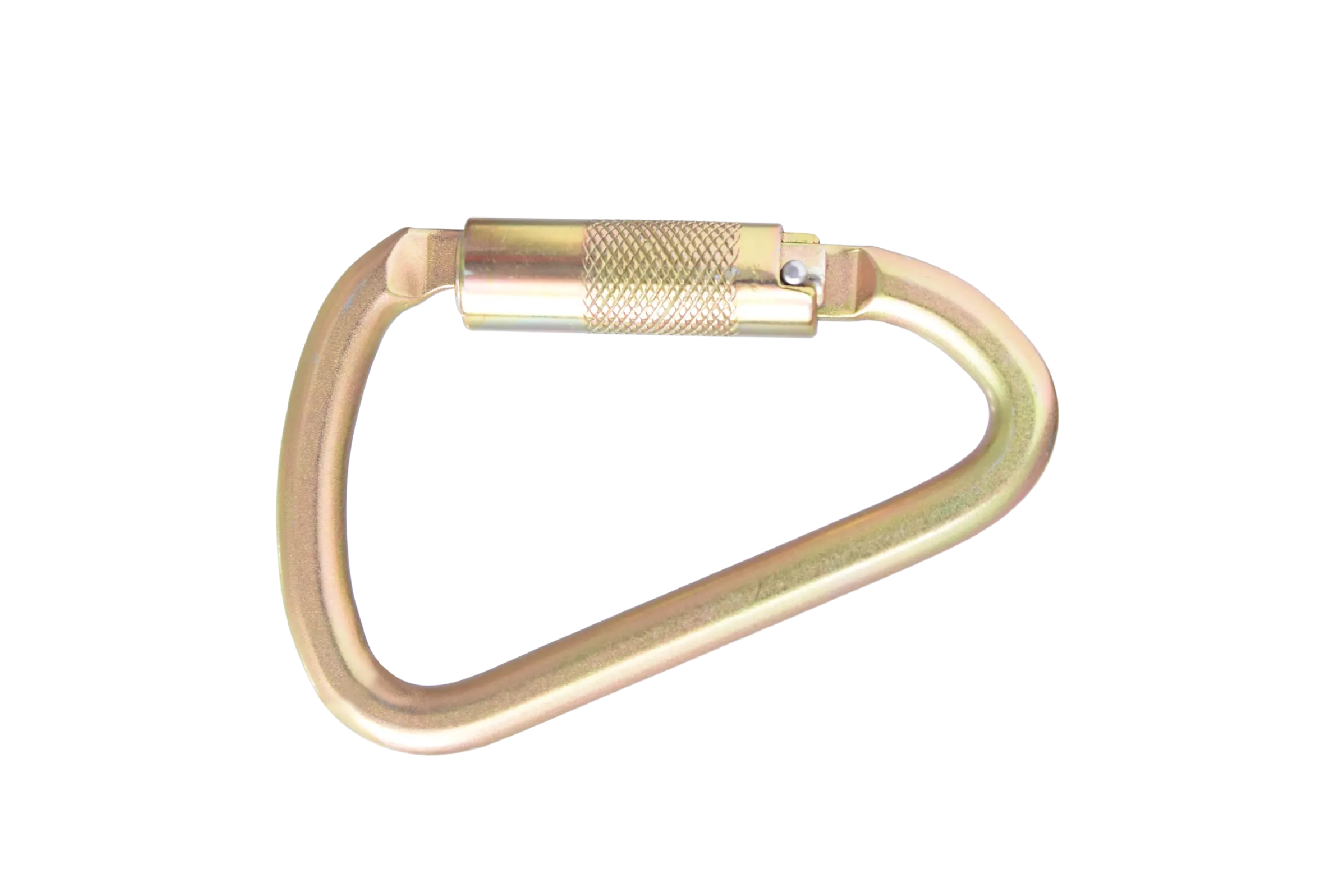 A robust steel karabiner featuring a bulb-shaped design and a quarter-turn locking mechanism, ensuring secure and reliable attachment. Ideal for fall protection systems and heavy-duty applications where durability and safety are paramount.