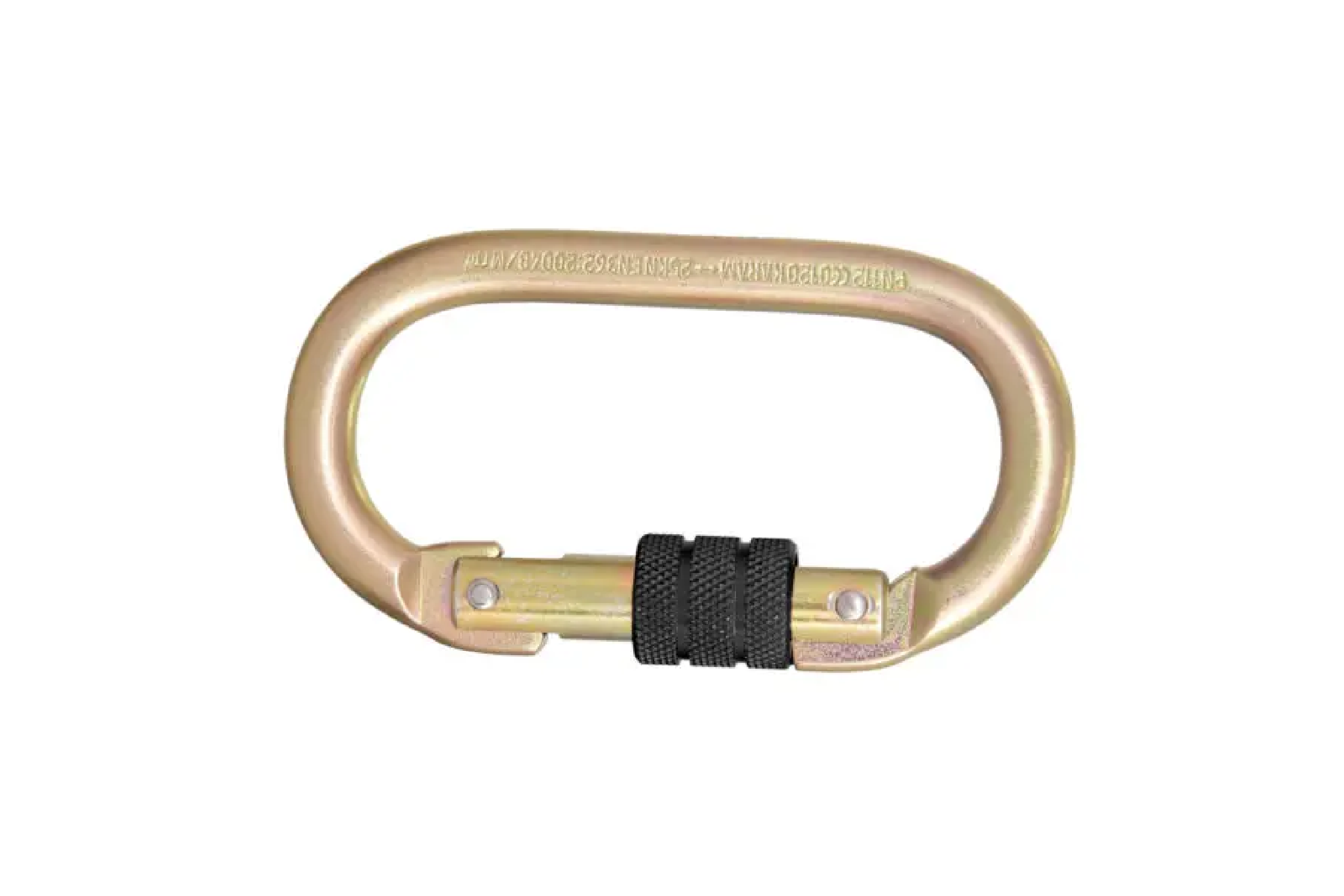 A durable steel karabiner featuring a screw-locking mechanism, ensuring secure attachment and preventing accidental disengagement. Ideal for use in fall protection systems and other safety applications where strength and reliability are crucial.